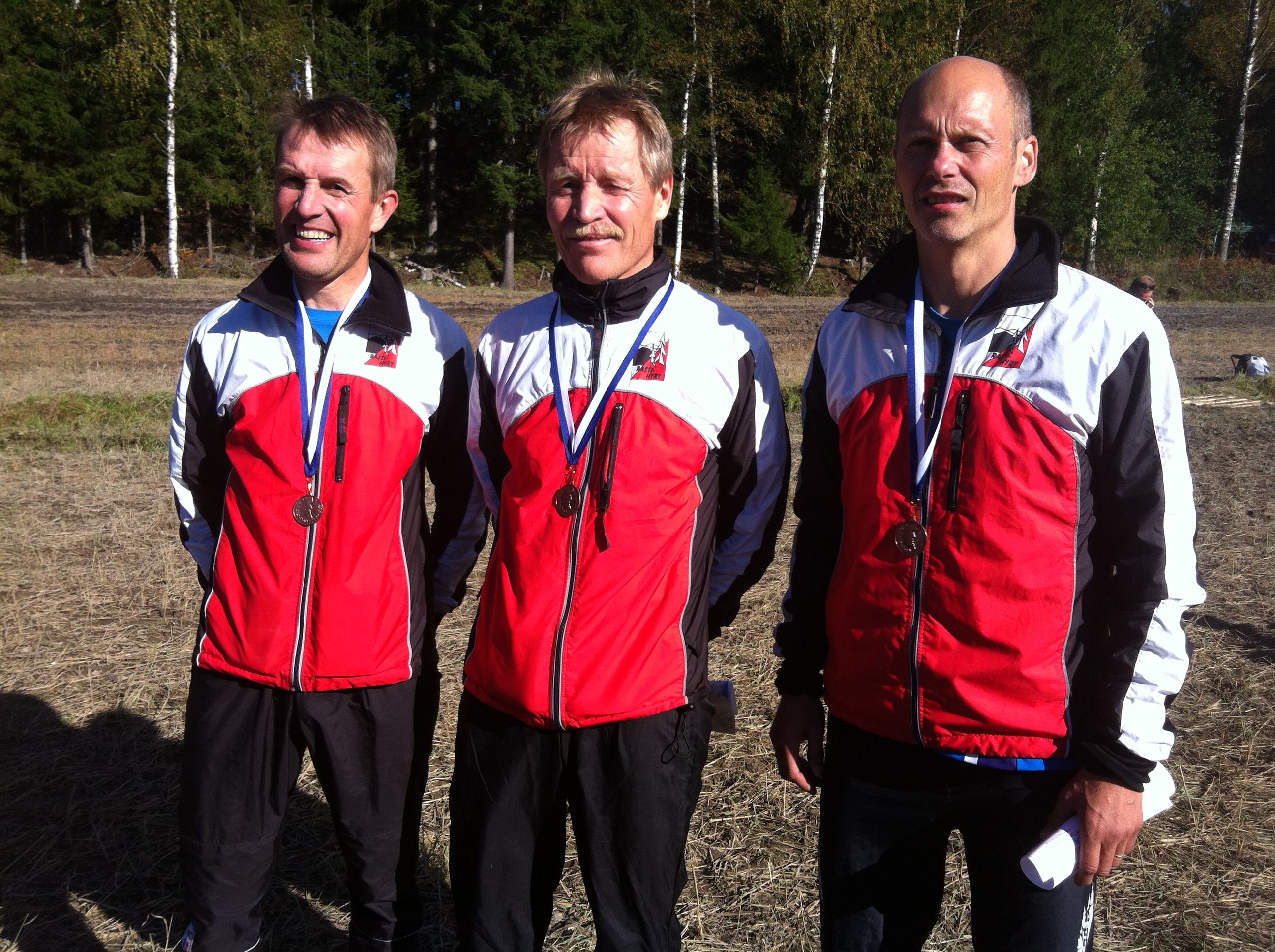 Seuramme viestijoukkue taisteli SM-viestissä sarjan H50 mitalisijalle sunnuntaina 20.9. Karjalohjalla. Joukkue uusi viime vuotisen pronssinsa täsmälleen samalla miehistöllä joskin juoksujärjestystä oli nyt muutettu. Kuvassa juoksujärjestyksessä oikealta Petteri, Timo ja Juha.